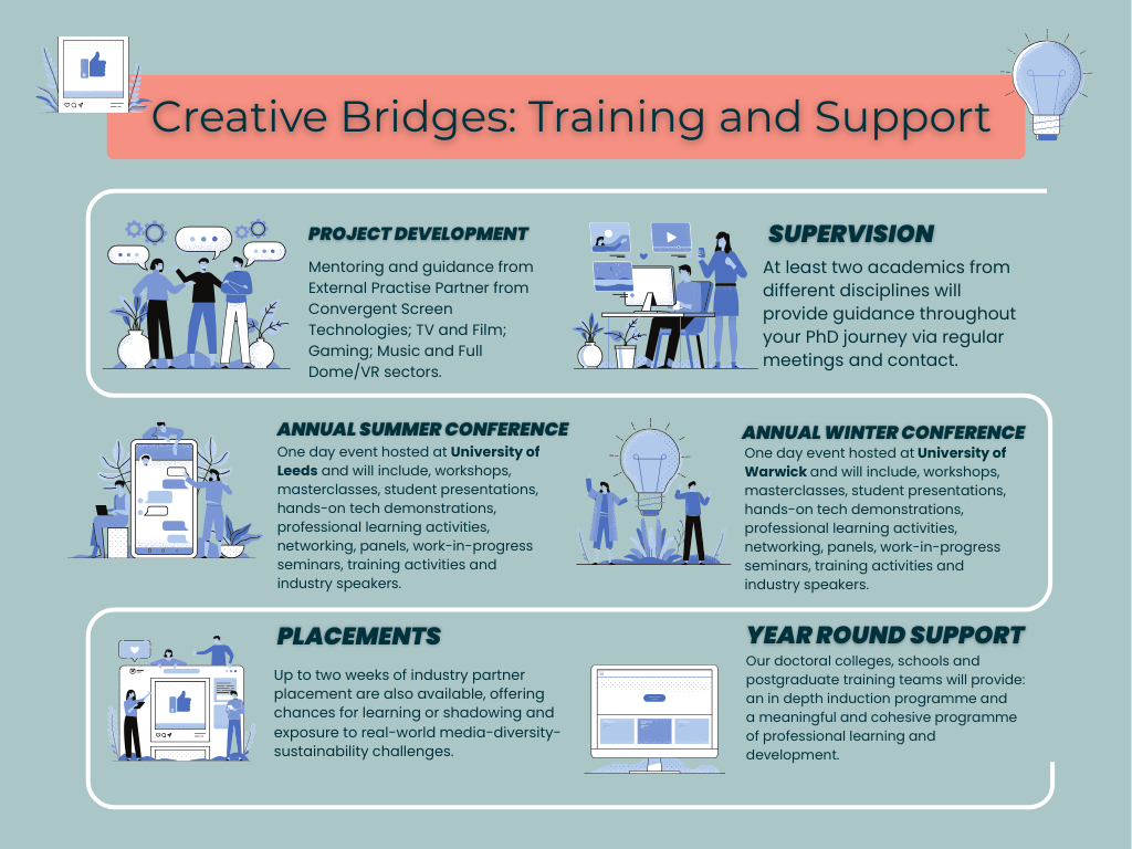 Our schools, doctoral colleges and postgraduate support teams at Leeds and Warwick will provide training and support via inductions, mentorship, and supervision throughout the year.